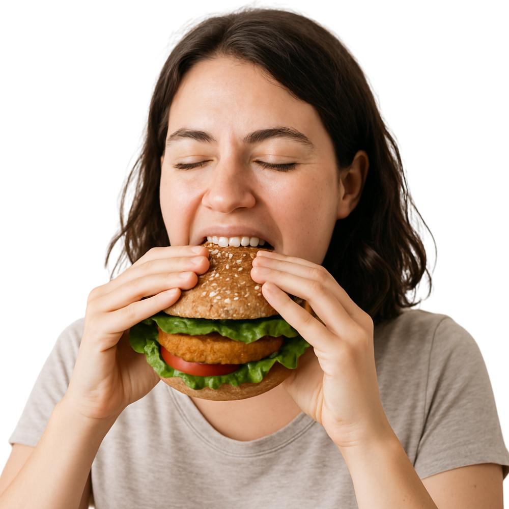 Com alface, cenoura, tomate, maionese de alho e pão de espelta.